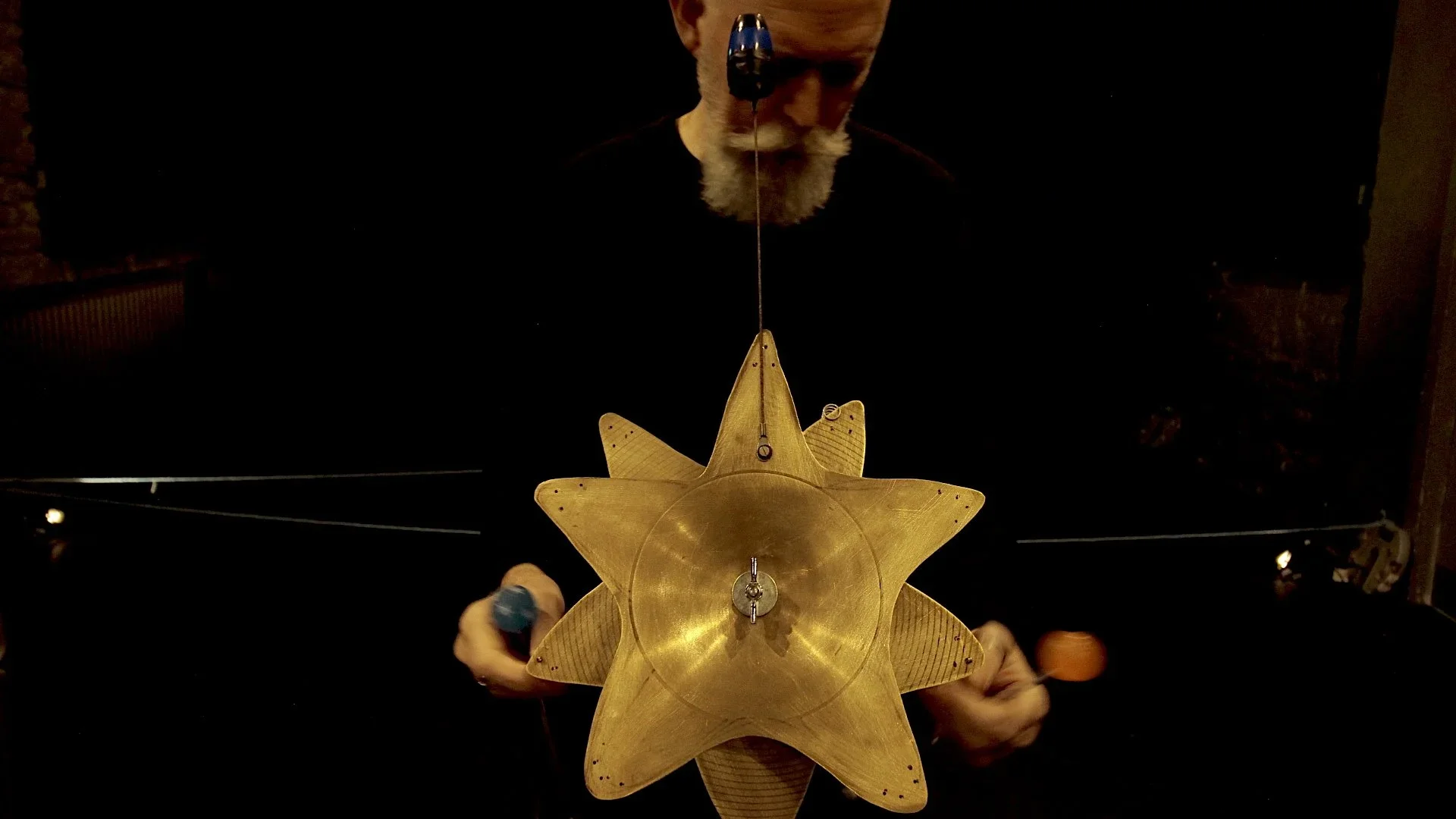 What or who is Odradek? A mysterious, star-shaped creature that inhabits liminal spaces like corridors and stairways, nimble, elusive and seemingly without any discernable function, Odradek was borne out of Kafka’s imagination and features in his short prose piece Die Sorge des Hausvaters - The Worry of the Family Man (our translation). Other texts we chose to explore were selected from The Complete Stories, The Blue Octavo Notebooks, The Zürau Aphorisms and The Diaries of Franz Kafka 1910 – 1913, such as, “My two hands began a fight..” and “A Common Confusion”. Nothing is ever stable or tangible in the worlds that Kafka creates: the seemingly real, the surreal and the absurd coalesce in ways that speak very directly to our contemporary world of colliding realities and clashing surfaces that leave us groping for anchors and orientation. Our aim was to explore performance-making tools that would give expression to something of these worlds that Kafka conjures up in his writing, to engender an environment and an atmosphere that would allow the words and the images to land and be perceived.